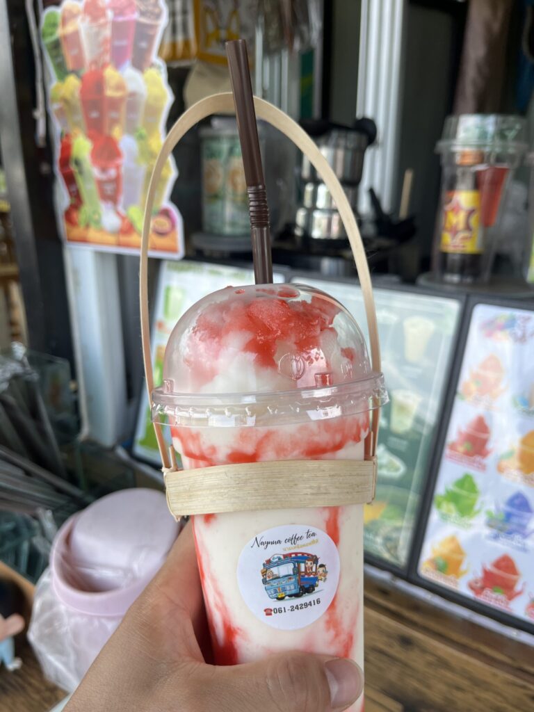 暑かったのでいちごミルクフラッペ50バーツにしました。結構ボリュームあります。