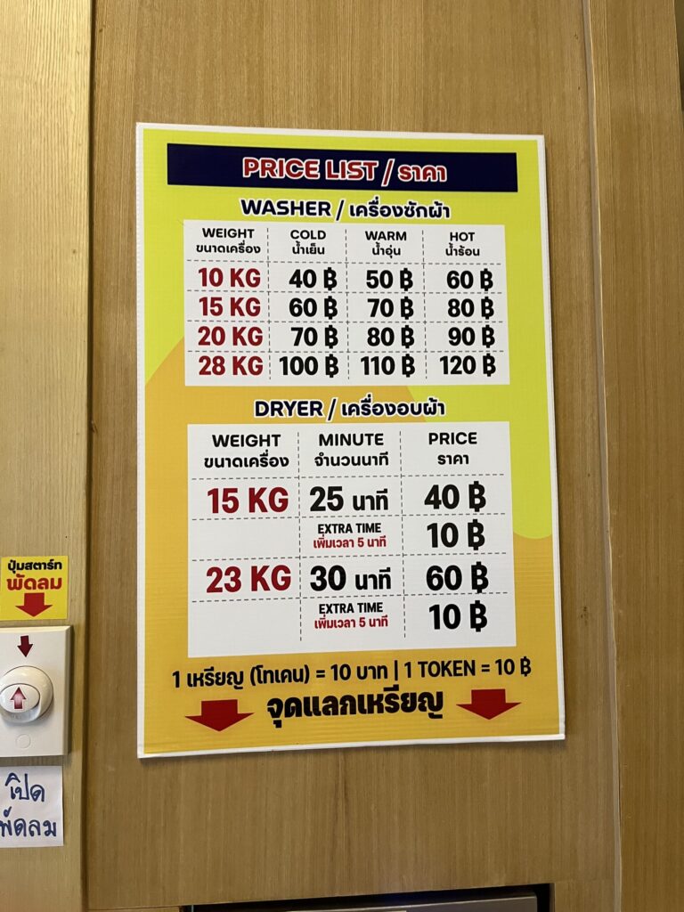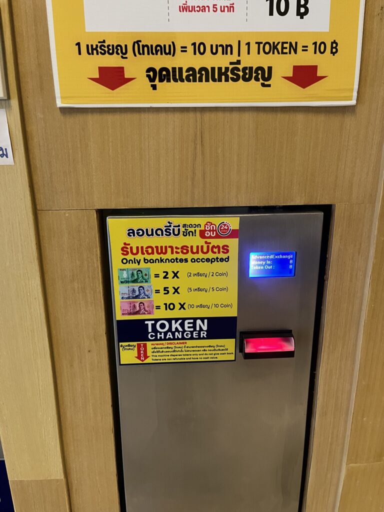 専用のコインに両替して利用します。洗濯・乾燥分を考慮して両替しましょう。小さいお金がなければ近くの屋台やセブンイレブンが近くにありました。