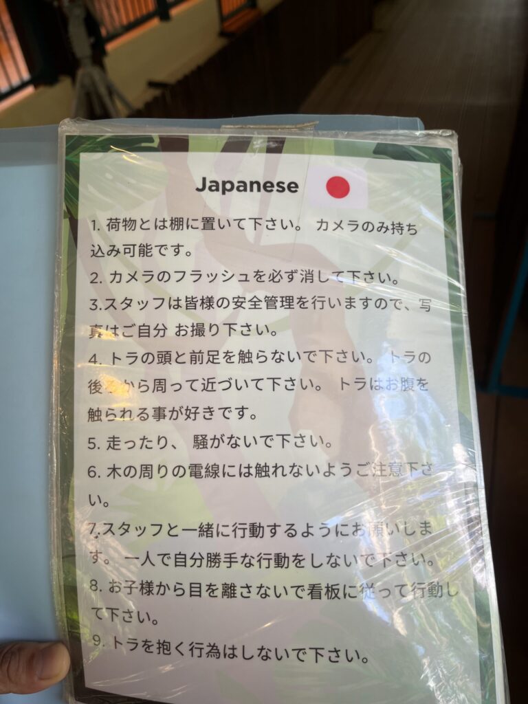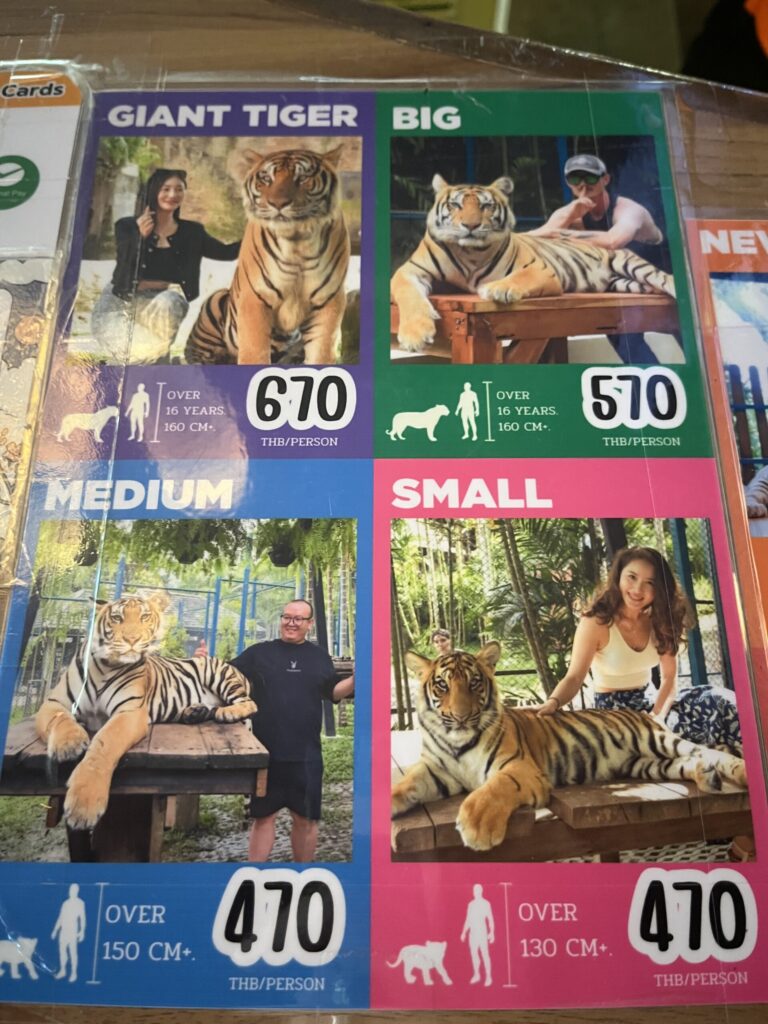 少し進むと受付が見えてきます。この受付でどのタイガー(大きさや種類)と触れ合いたいかを決めます。