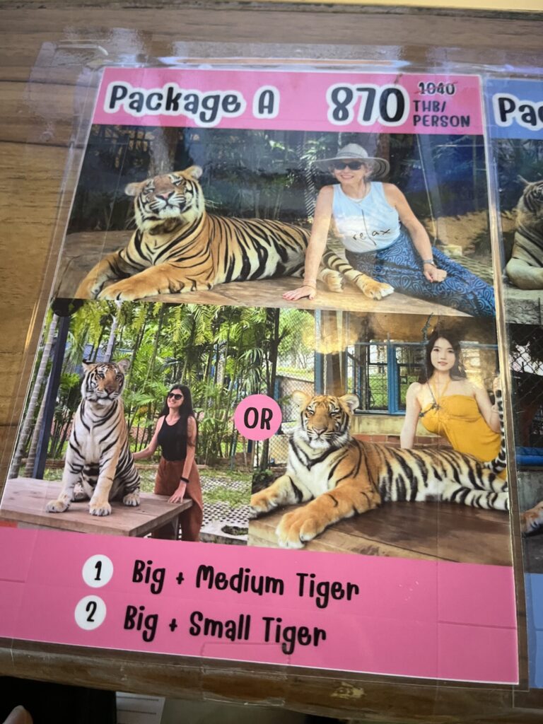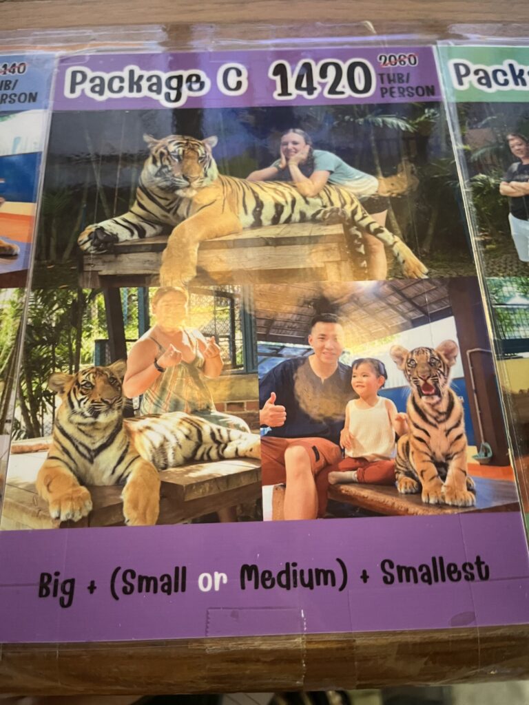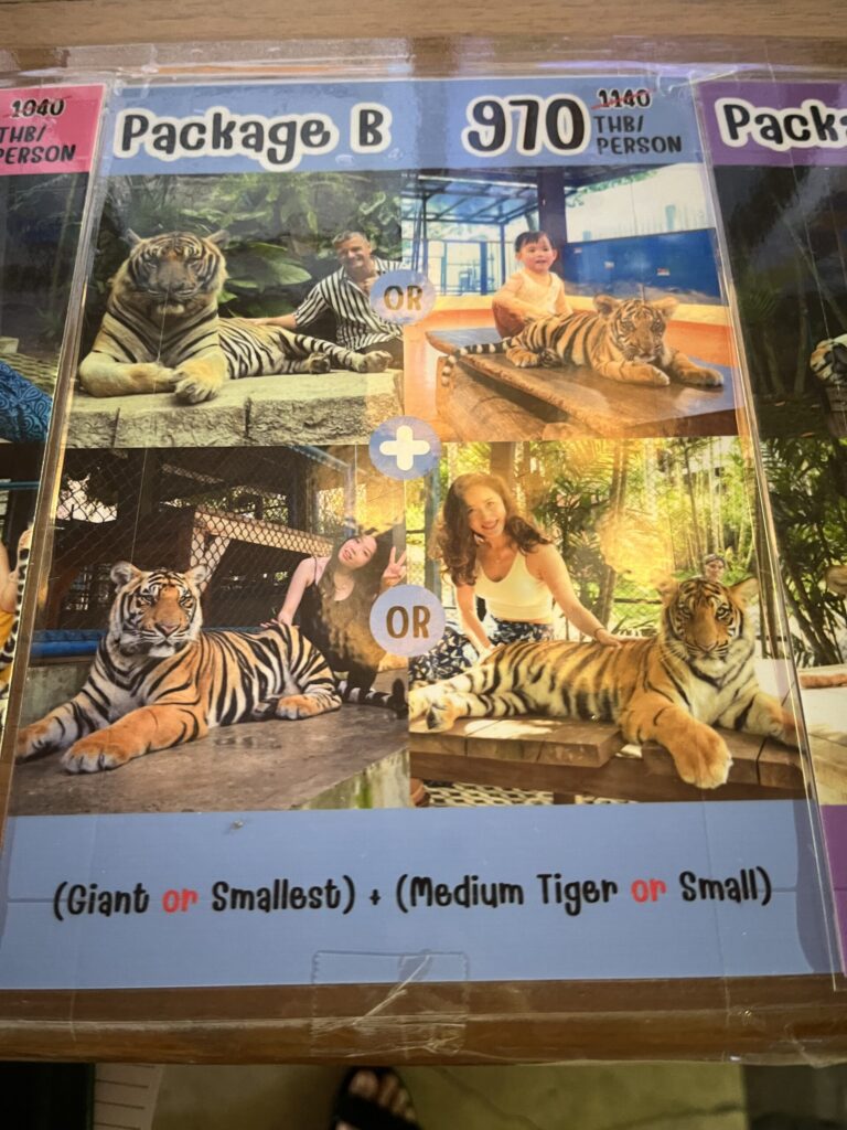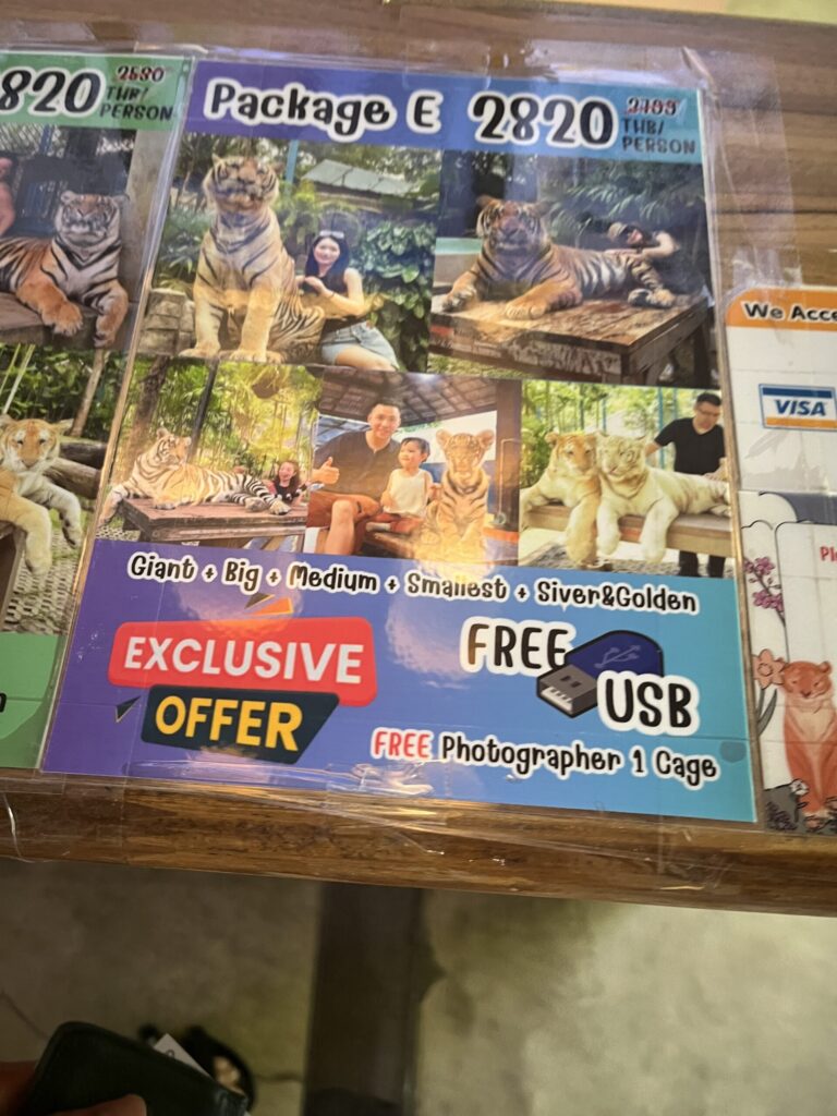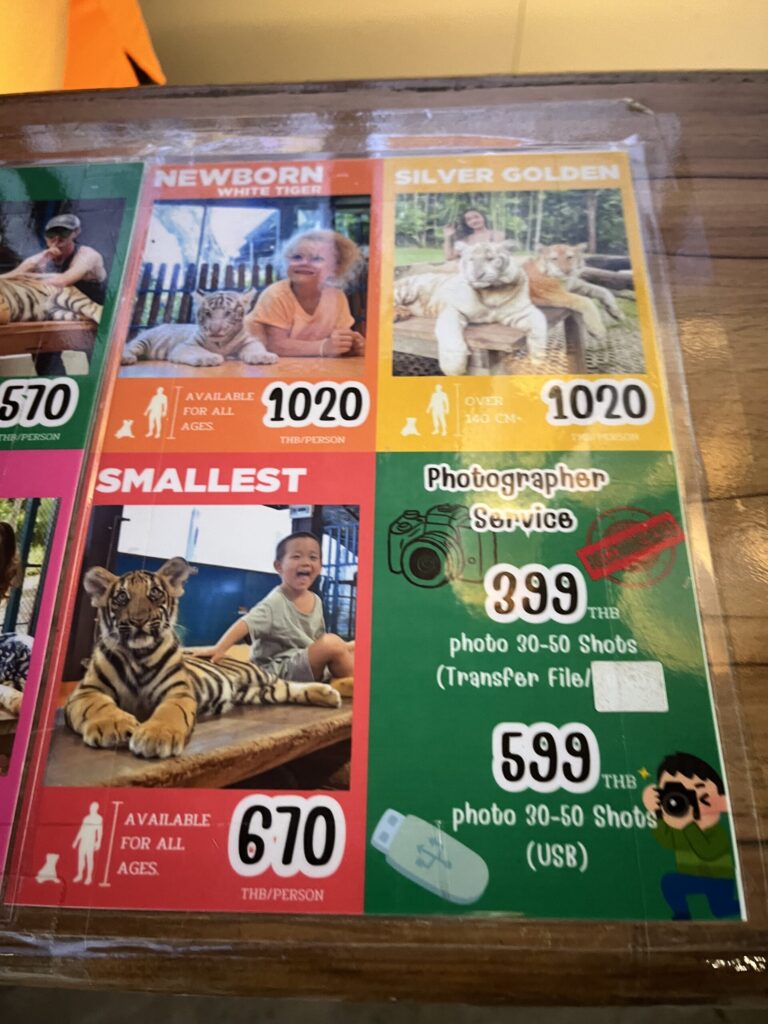 交渉の仕方はまずは自分の行きたい場所を全て伝えます。僕の場合はタイガーキングとメーサエレファントキャンプに行きたいと伝えると人数を聞かれ、1人と答えると「700バーツ」と言われました。