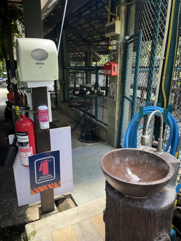 時間が来るとスタッフが教えてくれます。外に出ると4ヶ所くらい水道が設置されており、手を洗うことができます。