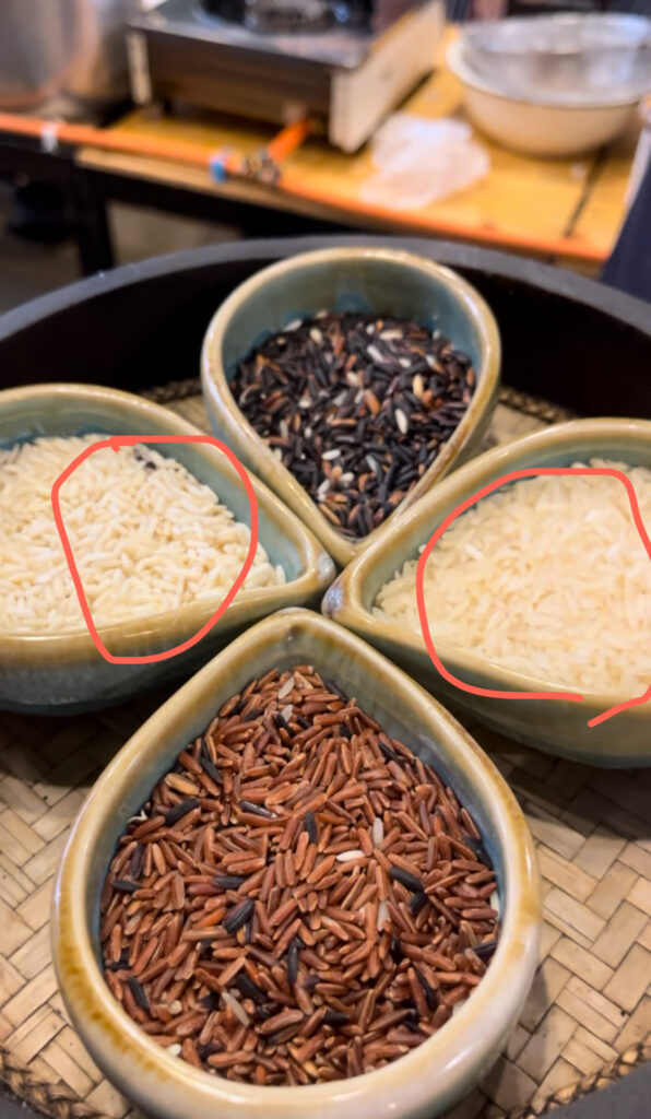 次にスティッキーライスを作ります。ここでクイズです。4つのライスの内どれがスティッキーライスでしょうか?(実際にありました笑)