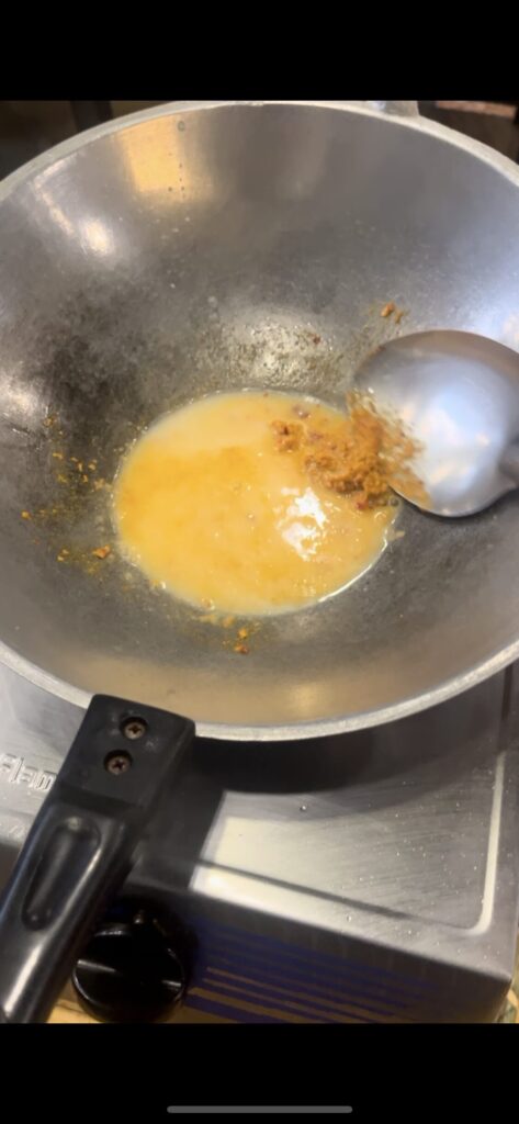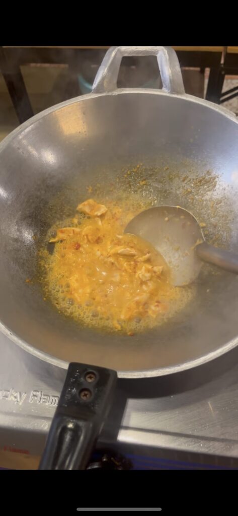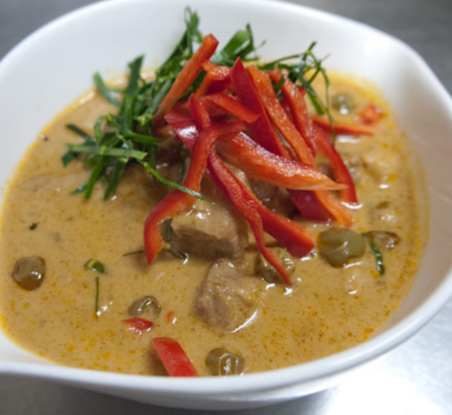 赤唐辛子とココナッツミルクをベースに、ピーナッツペーストでコクを加え、甘みと辛みのバランスが絶妙です。