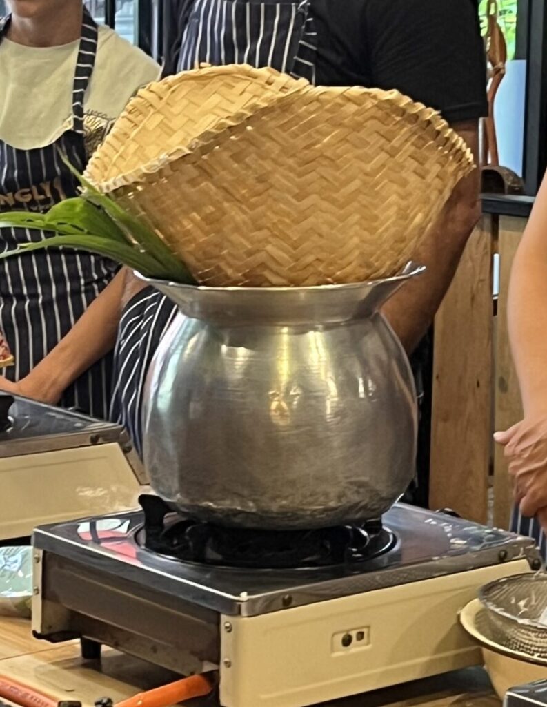 トムヤムグンを食べ終わると、スティッキーライスが完成していました。