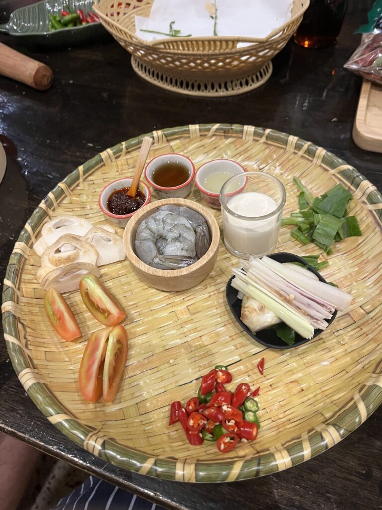 • 5つのソース(ニンジンの漬物、フィッシュソース、ココナッツシュガー、タマリンド、ピーナッツ)