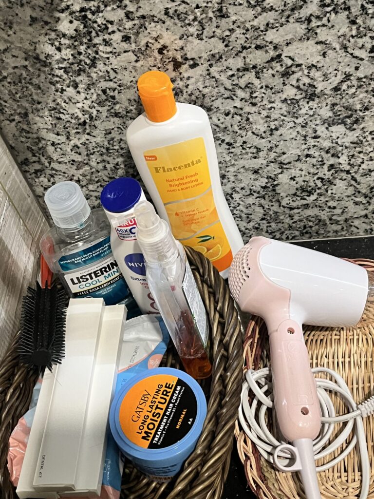 ドライヤー、ボディークリーム、歯ブラシ、ワックス、くし、