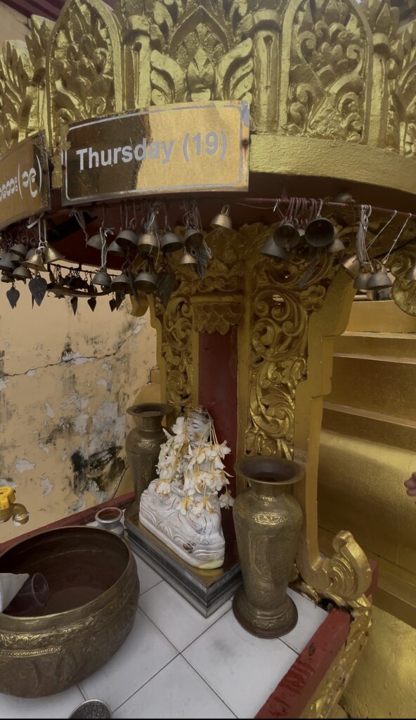 ミャンマーのパゴダを訪れると、曜日ごとの参拝スポットが並んでいるのを目にします。
