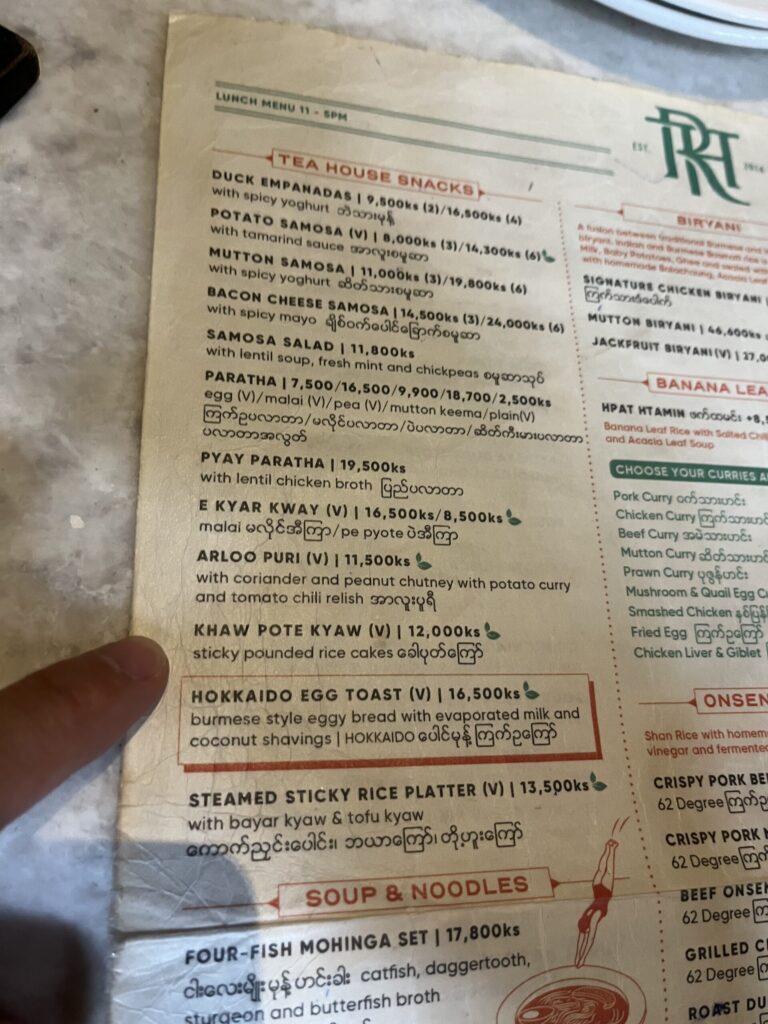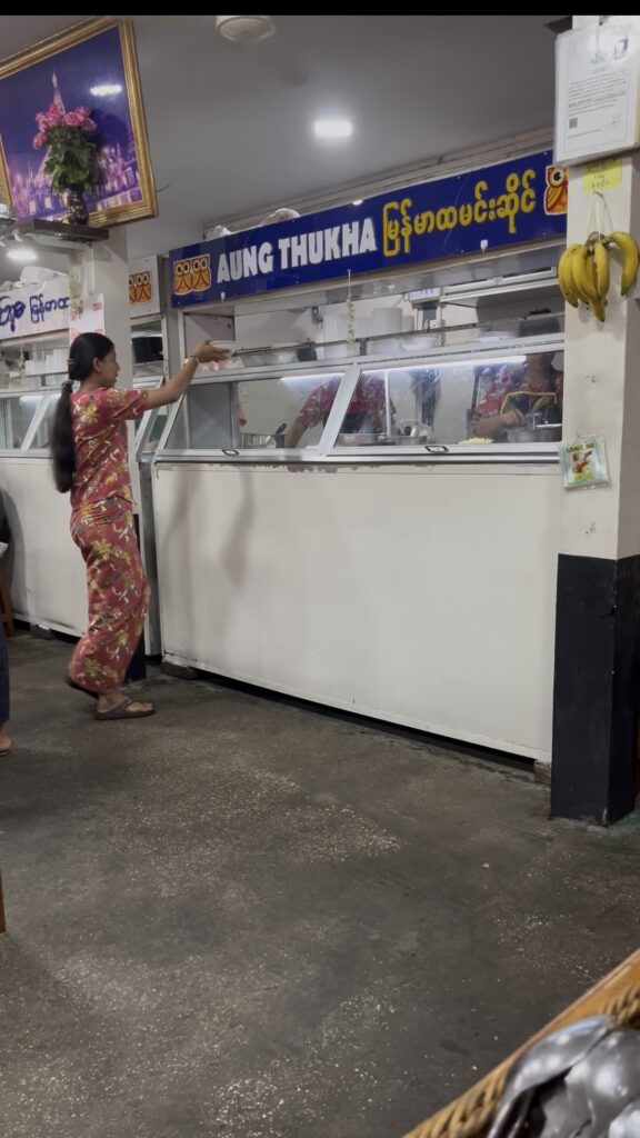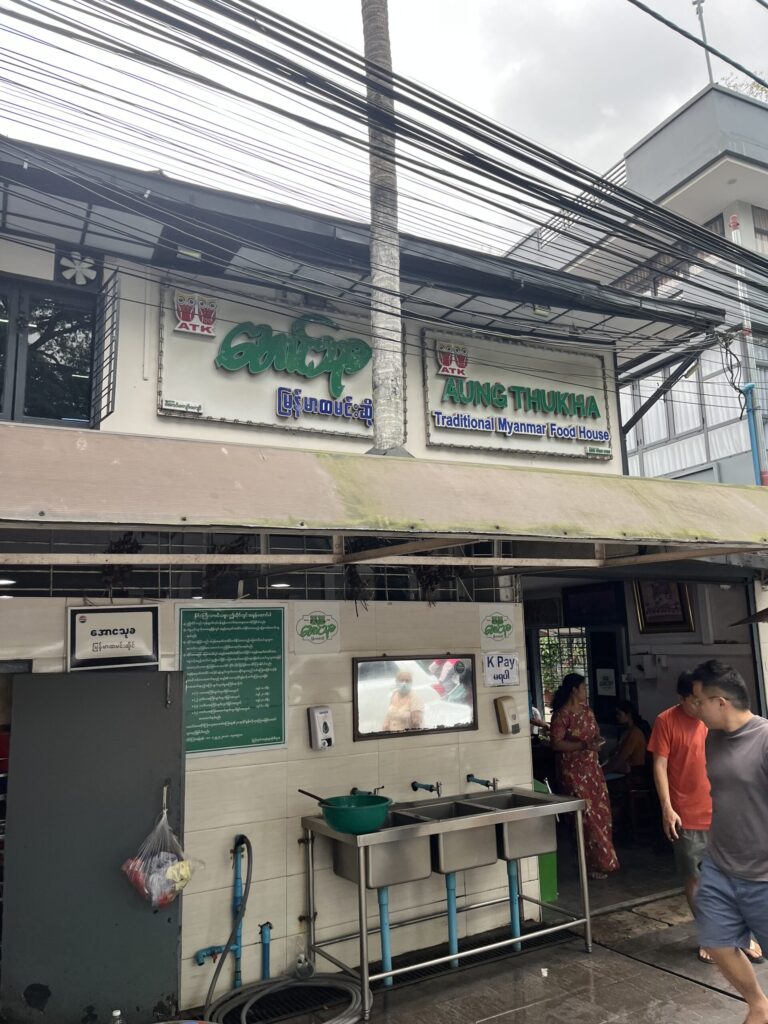 ランチはミャンマー料理が食べたかったので、バス停の人にこの近くのおすすめのお店を聞きました。3人くらいに聞いたら、Aung Thu Kha Traditional Myanmar Food Houseが有名とのことで行ってみることに。あとから調べてみると、地球の歩き方にも紹介されていたらしいです。