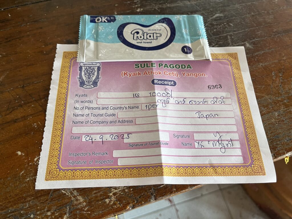 入ってくた入り口に戻ると、来場記念?の紙とウェットティッシュをくれました。(他のPagodaはくれませんでした)
