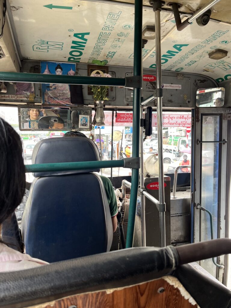 帰りはローカルバスにもう一回乗ってみることに。Sule Pagodaの近くのバス停へ向けて再び61番のバスに乗車。今回は最初から、変な方向に行ったらGrabで帰ろうと決めていた。