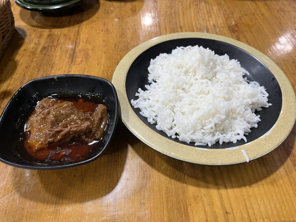 ご飯もタイ米のような感じで細長く美味しかった。