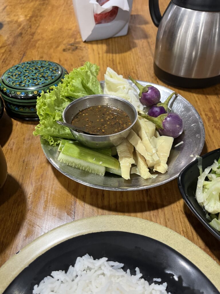 普通の生野菜とタケノコ、紫のやつはちょっとわかりませんでした。2,000kyat(約70円)