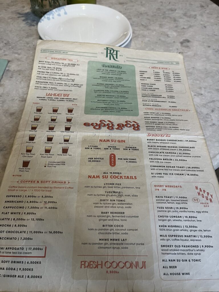 スイーツとドリンクで21,000kyat(約735円)