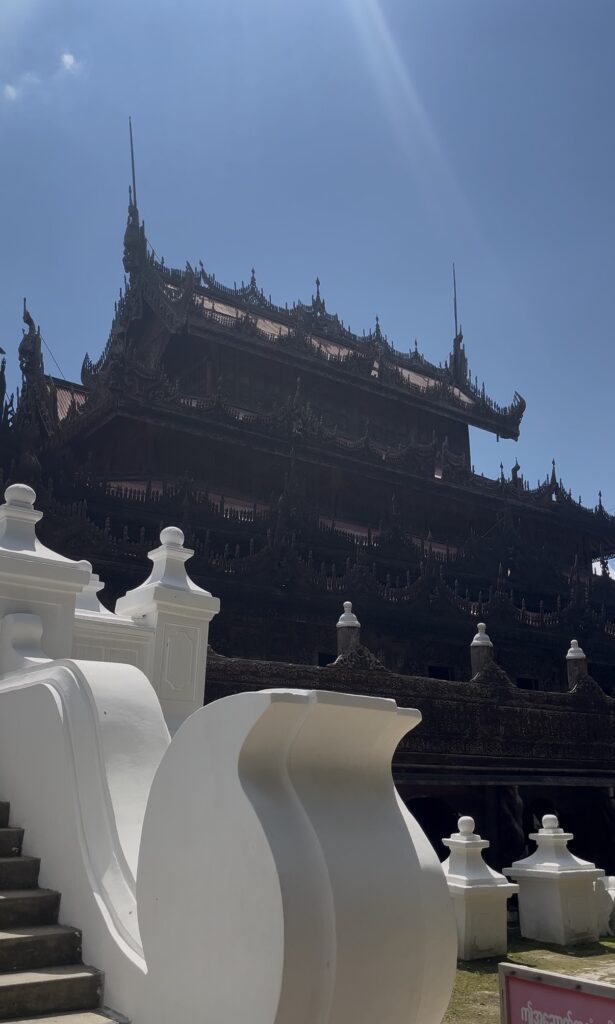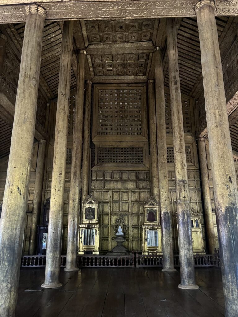 次に訪れたのはミャンマーでは珍しい木造のお寺。
