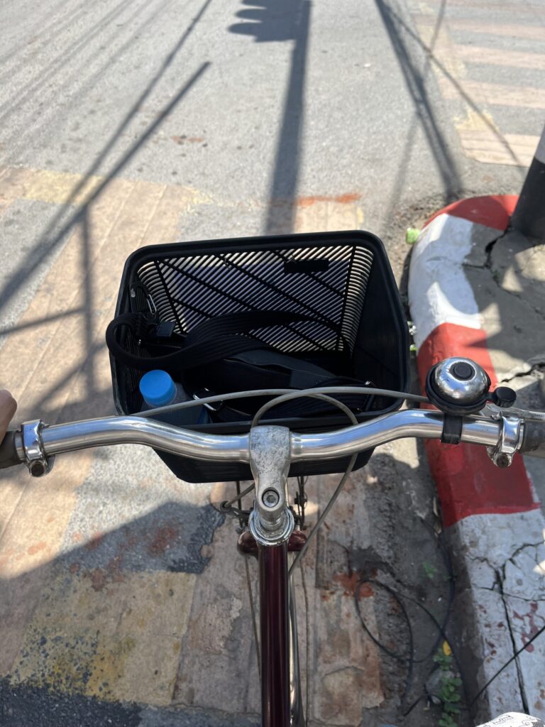 全体の写真を撮り忘れましたが、前にカゴがあってちょっと古めの自転車です。