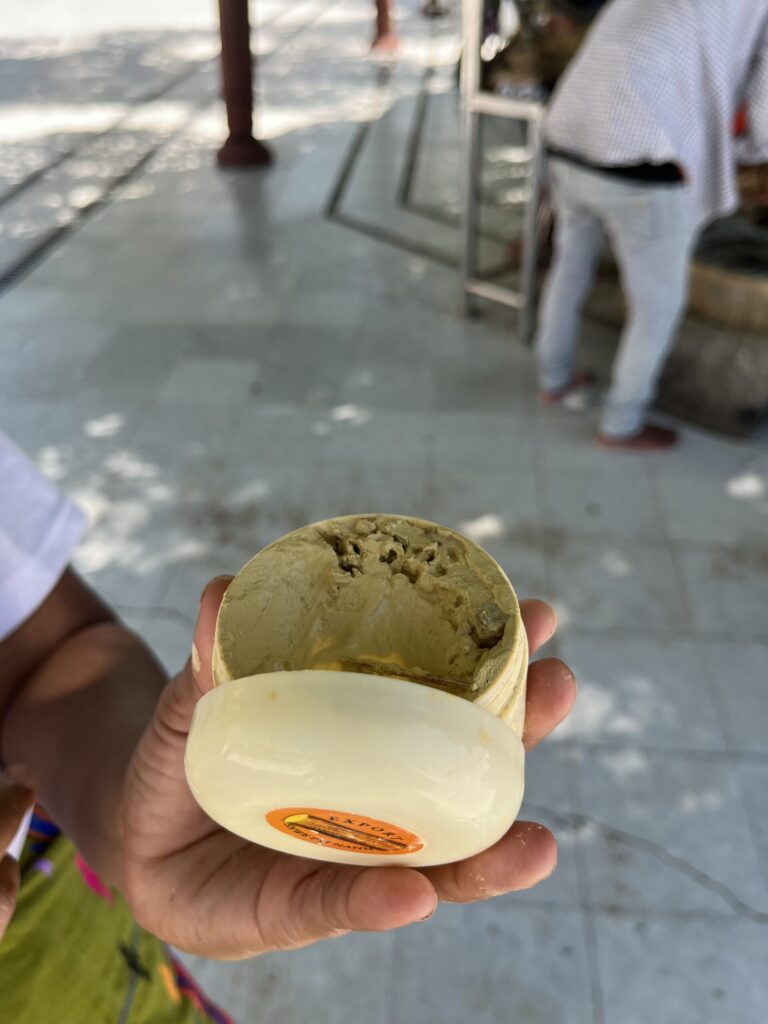 ミャンマーの日焼け止めのようなものでほとんどの人が顔に塗っているのを見かけると思います。