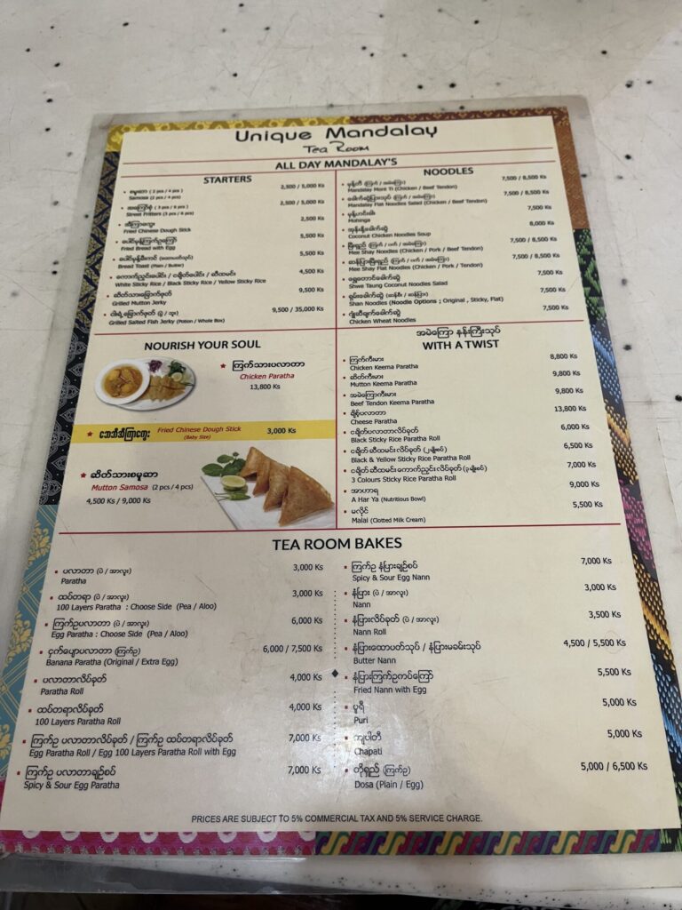 ランチはミャンマー人の友達におすすめしてもらった「Unique Mandalay Tea Room」に行ってみました。