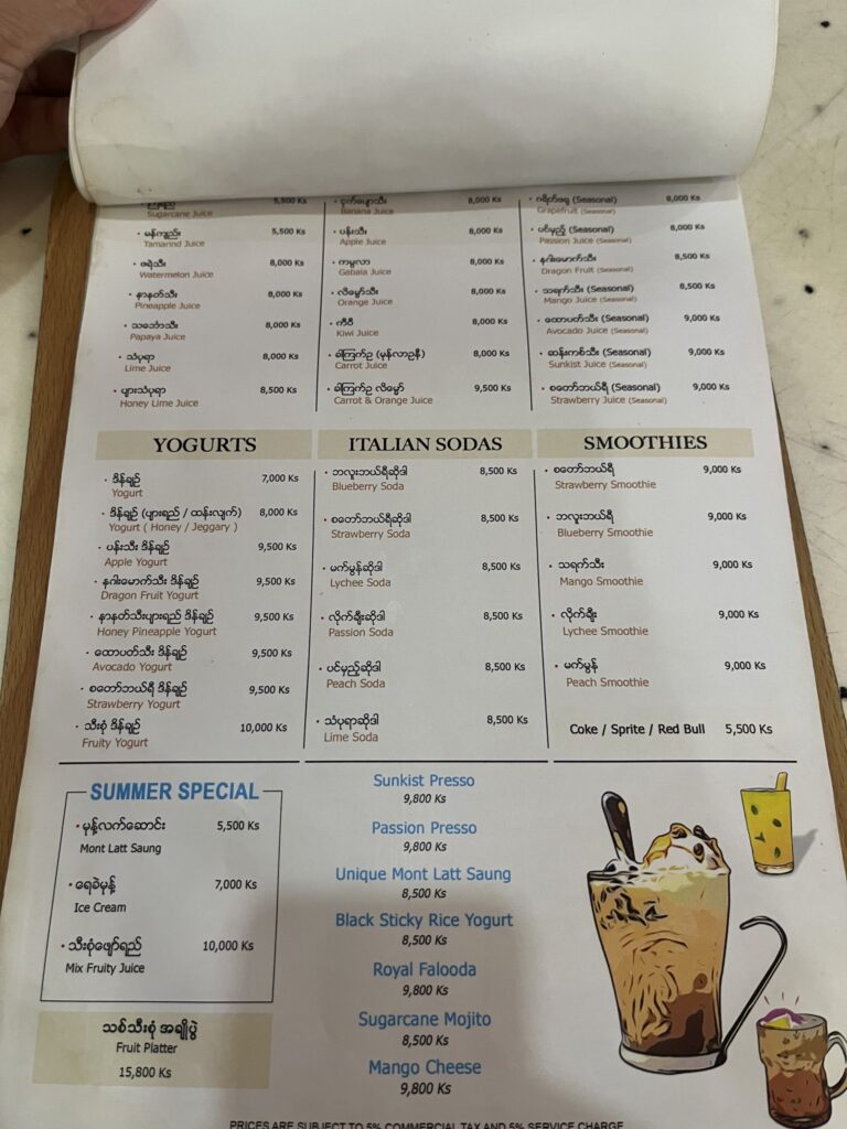 気温も30度近くあったのでアイスと飲み物を購入しました。5,000kyat約170円