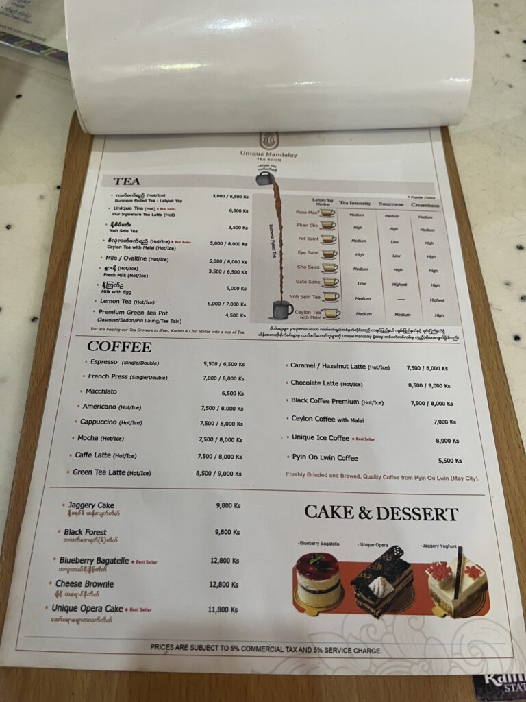 ミャンマーティー、コーヒー、ケーキ