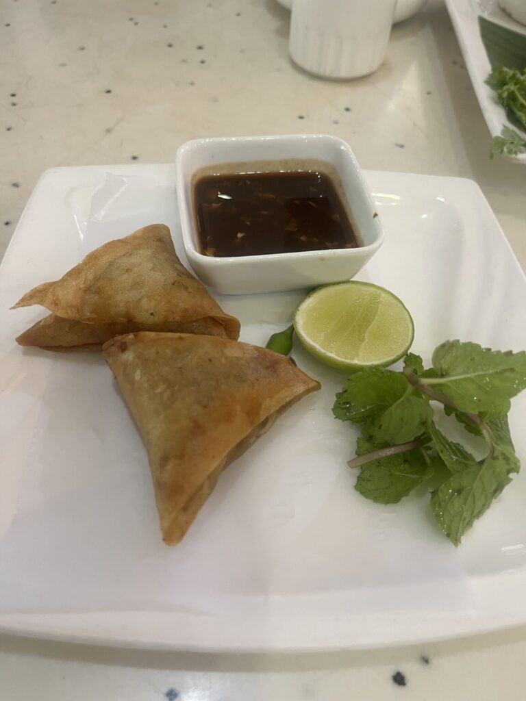 サモサと呼ばれる春巻きみたいな食べ物。注文してから揚げてくれるので熱々でした。