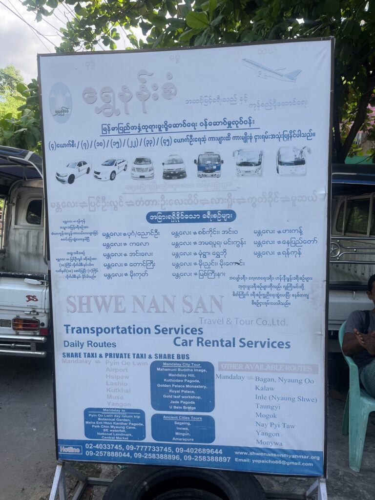 明日マンダレー空港からタイのドンムアン空港の便に乗る予定のため、空港行きのバスを探すことに。