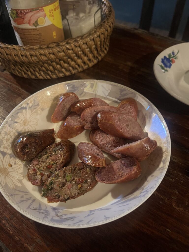 - 80,000LAK 約560円 夕食 サイウア(スパイシーソーセージ)Sikhoun muang