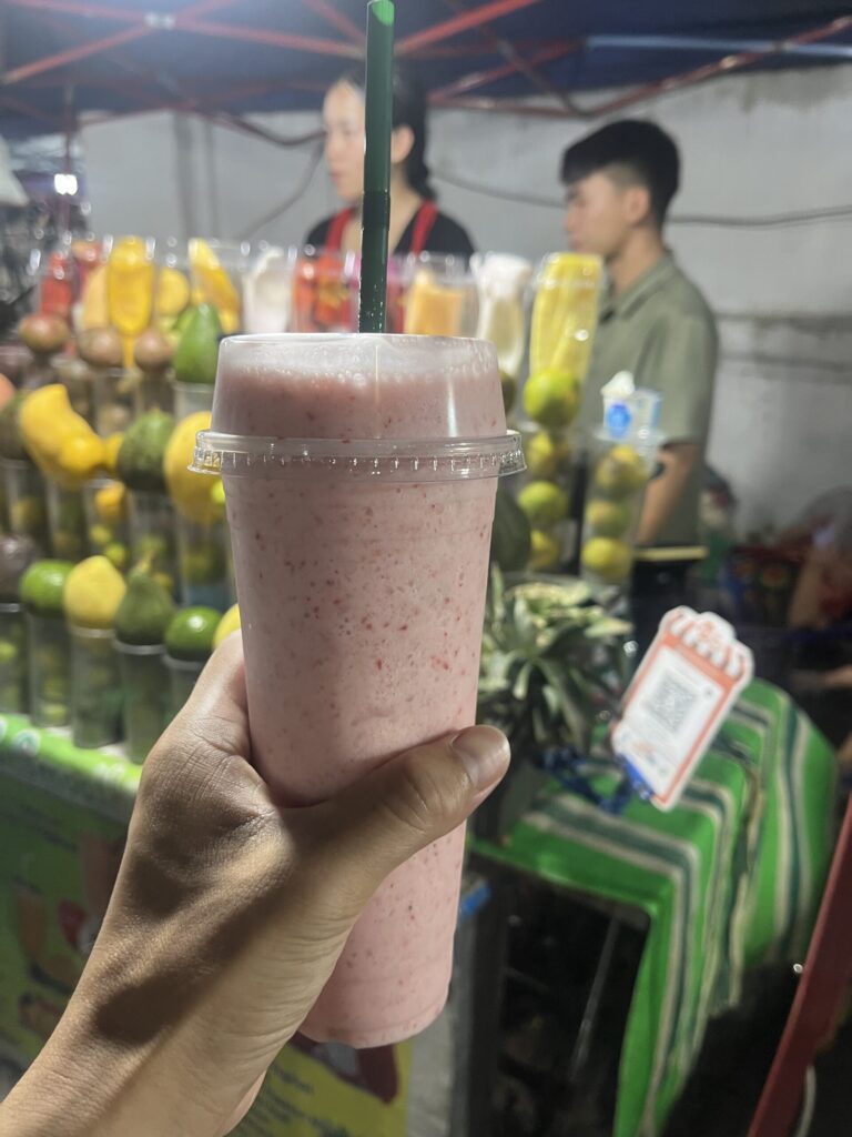 - 30,000LAK 約210円 いちごバナナスムージー ナイトマーケット