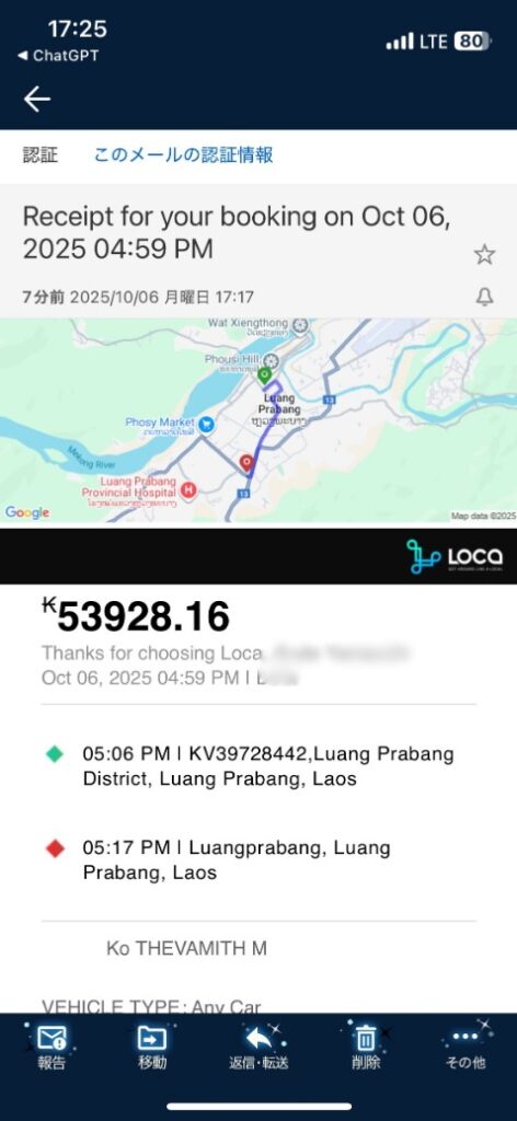 • 54,000LAK 約380円 LOCA(タクシーアプリ)2,5km 10分 ホステルからバスターミナル