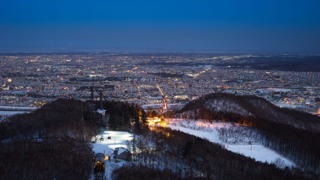 Mount Moiwa offers one of the best night views in Japan, especially stunning in winter when the city is covered in snow. Visitors can reach the summit by ropeway and enjoy panoramic views of Sapporo’s city lights combined with white landscapes. It is a popular romantic spot and an easy winter activity for travelers who want scenic views without intense hiking.